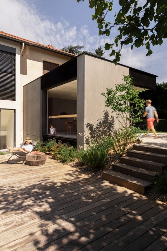 È in questo scenario che si inserisce l’intervento di DANK architectes su una casa unifamiliare alle porte di Lione in Francia. Oltre alla ristrutturazione interna della casa, gli architetti ne progettano un ampliamento, una nuova stanza del tutto flessibile nel suo uso, dove poter cucinare e mangiare all’aperto.