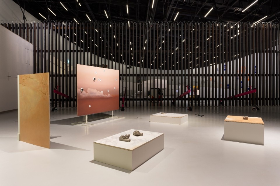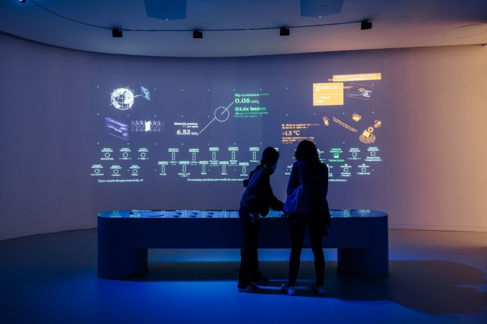 Aquaria - Or the Illusion of a Boxed Sea a cura di Angela Rui riflette, invece, sulle possibilità e sulle nuove domande che si pongono quando si ripensa il nostro rapporto con il mondo marino. Gli acquari sono dispositivi che organizzano e rappresentano la vita marina; sono sistemi complessi che, nel paradigma della modernità e dell’urbanizzazione, incarnano la trasformazione della natura in cultura, con l’aiuto della tecnologia e del capitale. Questa separazione della cultura come entità separata dal mondo organico-naturale deriva da tentativi scientifici e razionali di categorizzare e organizzare. Tuttavia, questi tipi di costrutti che dividono la cultura dalla natura non sono più convincenti nel contesto del nuovo regime climatico, modificato anche dalla pandemia, che fa appello a nuove narrazioni che vanno oltre le gerarchie costruite intorno all’umanità e alla sua esplorazione di risorse e corpi. Un dispositivo espositivo complesso che apre nuove domande attraverso la decostruzione di scenari e sistemi dove la forza del design si rivela come una disciplina senza nome. Viviamo in un mondo dove la scala dell’intervento è completamente saltata. Lo spazio del minuscolo e dell’enorme. Proprio in questa dimensione nuova e misteriosa si inserisce, anche, Earth Bits – Sensing the Planetary di Dotdotdot che opera nell’infinitesimo dell’azione umana e prova a rappresentarlo restituendo l’immaterialità del contatto. Una potente evocazione multimediale che stimola un pensiero critico andando oltre la semplice messa in scena di un messaggio, grazie alla costruzione di una storia da esplorare attraverso linguaggi innovativi che aiutano a decodificare la complessità, strutturare il pensiero e creare conoscenza. Un’apertura al confronto tra scienza, cultura e società.