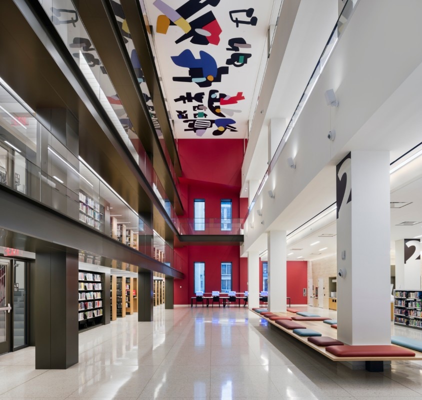 Il programma della nuova biblioteca circolante si adatta al contesto e alle comunità che serve, quella di tutti i newyorkesi, accogliendo più di 400.000 libri in una biblioteca per bambini, una per ragazzi, un Business Center, un centro di apprendimento per adulti, aree di lettura flessibili, più una sala conferenze ed eventi e una terrazza che sorveglia Midtown, la prima e unica terrazza libera e accessibile al pubblico di Manhattan.