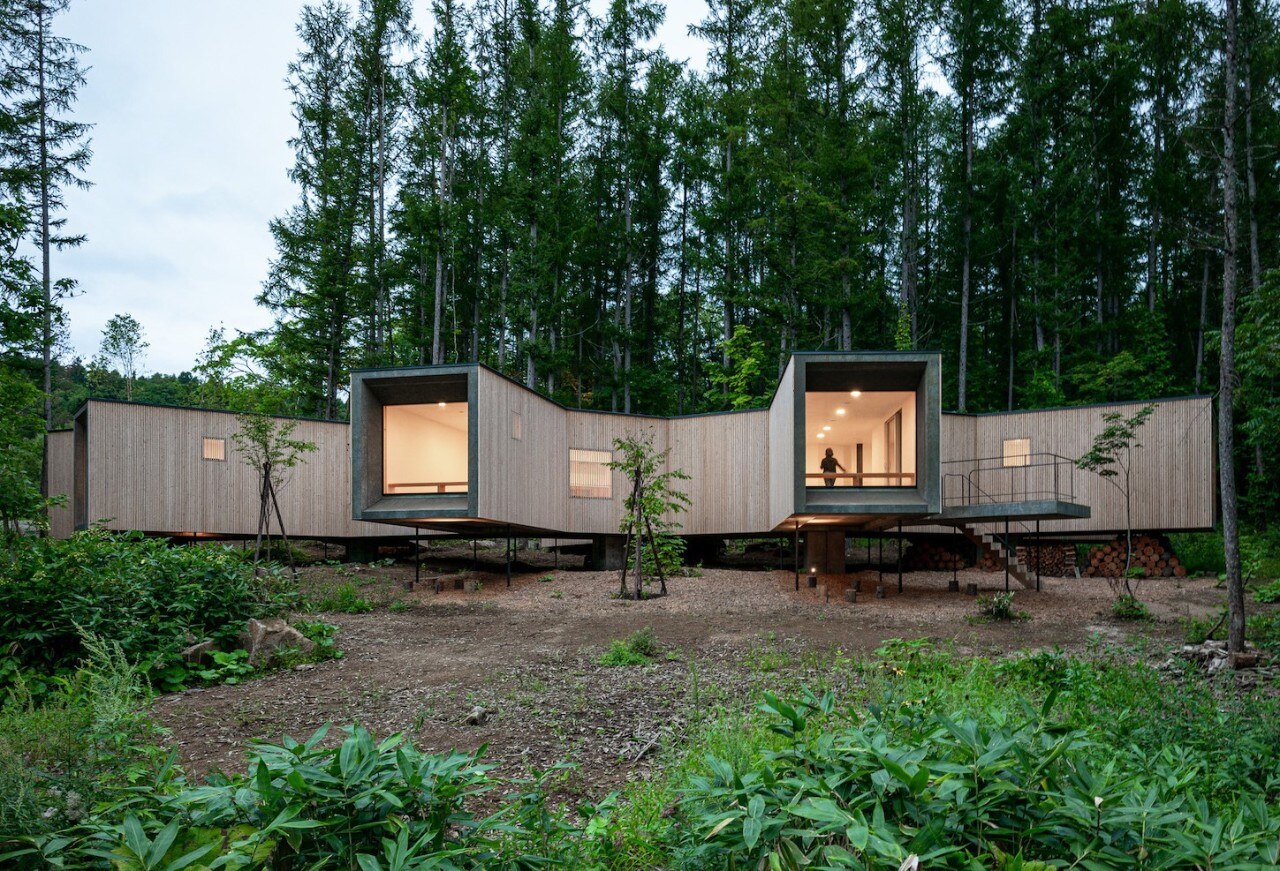 A breve distanza dalle piste da sci di Niseko – località turistica molto frequentata sull’isola giapponese di Hokkaidō – una famiglia numerosa ha chiesto allo studio Florian Busch Architects la progettazione di una casa lontana dal trambusto vacanziero, “una fuga nella solitudine della foresta” come descrivono gli stessi architetti.