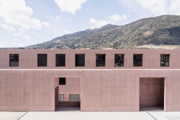 Alla monumentalità delle facciate esterne – pareti in calcestruzzo di inerti di porfido rosso e pigmenti bocciardati a mano – si contrappone una ricerca di familiarità negli interni che attingono dal vocabolario architettonico e materico della città storica. Il foyer e gli spazi distributivi si presentano come generosi e accoglienti salotti per la città, camminando tra quali ci si orienta grazie a varchi caratterizzati da imbotti in prezioso marmorino. Gli ambienti di servizio e gli spazi di filtro sono rivestiti con carta da parati di colore neutro, a memoria delle tappezzerie che adornano le stanze del Palazzo Vescovile di Bressanone mentre gli elementi di distribuzione verticale e gli arredi, realizzati in legno di rovere tinto scuro, richiamano le opere di falegnameria dei palazzi del centro storico. Tende arricciate infine, con caratteristiche fonoassorbenti, dai morbidi colori pastello, filtrano la luce naturale.