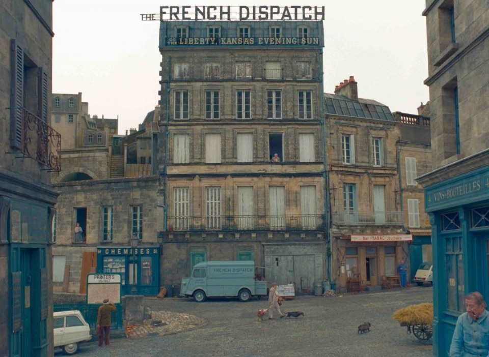 Il più grande regista-architetto in attività, Wes Anderson, sta allargando la sua voglia di progettare, disegnare, arredare e fondare mondi. L’ha sempre fatto, in tutti i film. I molti personaggi che animano le sue storie diluiscono la concentrazione che ci sarebbe se in gioco ci fossero solo 2 o 3 caratteri, finendo così per mettere in risalto ciò che li accomuna. La casa di I Tenenbaum, la nave di Steve Zissou, i tunnel sotterranei di Fantastic Mr. Fox o i vagoni del Treno per il Darjeeling sono alcuni esempi, ristretti. Poi i film si sono fatti più grandi. Un intero hotel o ancora un’isola di cani. Adesso per The French Dispatch una città.