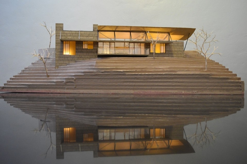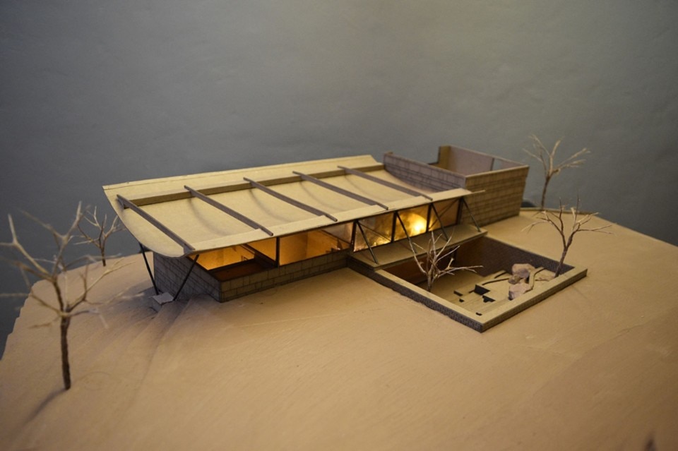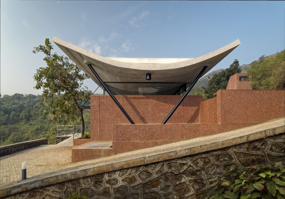 L’opera, nella semplicità essenziale delle sue forme e nell’utilizzo di materiali grezzi, rimanda al brutalismo. Il volume principale, in parte vetrato e in parte intonacato, funge da supporto a una copertura sospesa concava in ferrocemento lunga 25 metri, che ricorda il tetto del portico monumentale del Parlamento di Chandigarth di LeCorbusier; che raccoglie l’acqua piovana, incanalata e immagazzinata per permettere l'irrigazione nei mesi più secchi.
