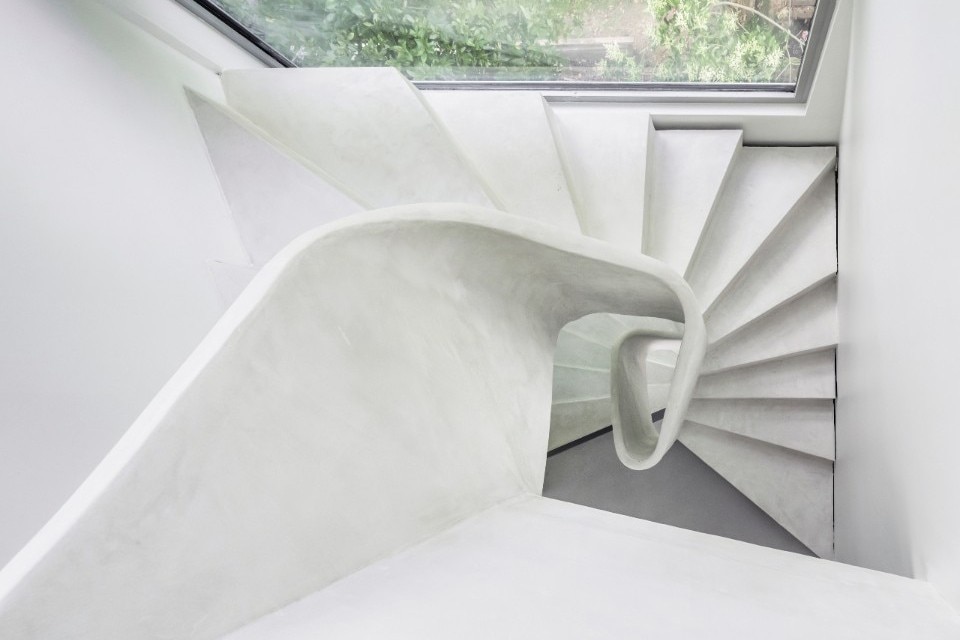 Avignon Architecte ha costruito l’edificio tenendo in considerazione le preesistenze e non demolendo il muro che divide la casa da un tenuta poco lontana, di importanza storica per Nantes. Gli interni sono luminosi e l’altezza dell’edificio – 14,50 metri in totale – un tratto centrale del progetto, che si articola su quattro livelli ed è attraversato da una scala scultorea e curvilinea che sembra un nastro di tessuto.