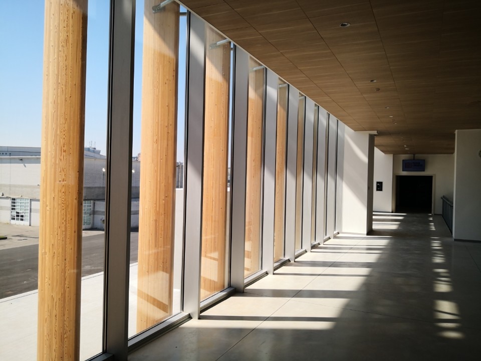 La Fiera di Padova ha una lunga storia: nasce nel 1920 e il suo sito originario viene esteso a più riprese, fino all’intervento più recente di Franco Stella, del 1998. Ne fanno parte i padiglioni 7 e 8, terminati nel 2002. Oggi, a 20 anni di distanza, è l’architetto giapponese ad aggiungere l’ultimo tassello. Si tratta di un volume alto una ventina di metri, lungo 130 e largo 25, che dà le spalle a un gomitolo di infrastrutture esterne al complesso fieristico. L’edificio “sostituisce il vecchio palazzo delle Nazioni” racconta Kuma, “di cui abbiamo voluto mantenere il portale scultoreo, in linea con l’asse del complesso della fiera”. I portici tipici della città sono richiamati in facciata dal colonnato ritmico di legno, che definisce uno spazio coperto sui fronti del corpo edilizio, bianco e vetrato. “Il modello ideale”, continua Kuma, “è stato il medievale Palazzo della Ragione, centro della città”. All’interno, una serie di sale modulari, spiega lo studio, definita attraverso lo spatial layering, tecnica giapponese che consiste nella sovrapposizione di spazi flessibili, con diversi gradi di permeabilità. Le sale più capienti, da 1.500 e 1.000 posti, non potevano che essere intitolate a Giotto e Mantegna.