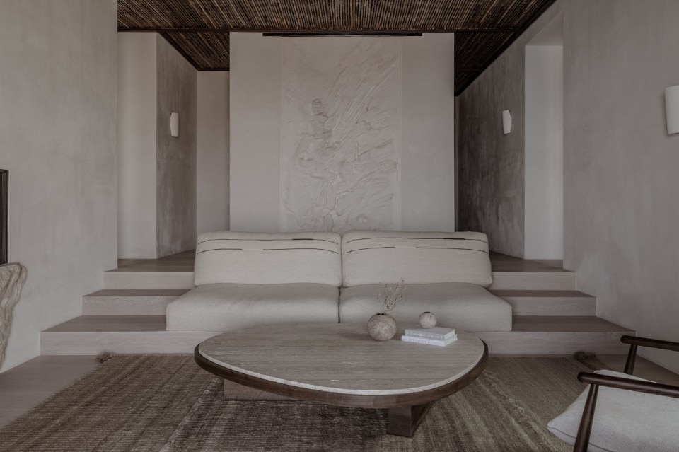 Lo studio Block 722 guidato dall’architetto Sotiris Tsergas e dall’interior designer Katja Margaritoglou, miscelando linguaggi propri del mondo greco e di quello nordico, ha realizzato alle pendici settentrionali del monte Thrypti, sul versante orientale dell’isola, un’opera che fonde equilibratamente due anime: quella aulica e a-temporale propria di un’architettura dai volumi netti ed essenziali, fortemente debitrice della tradizione costruttiva locale, e quella contemporanea caratterizzata da un gusto elegante e sofisticato che traspare dagli arredi minimali e dalle opere d’arte a corredo degli spazi.