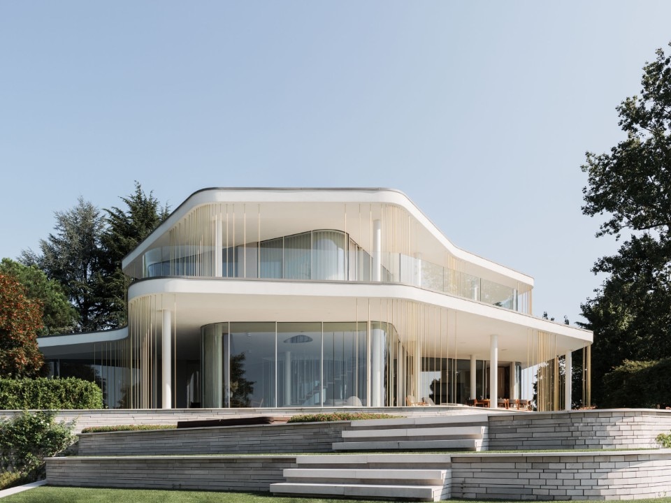 La costruzione è caratterizzata da una bellezza eterea e radiosa, enfatizzata dai toni immacolati di strutture e finiture, dalle generose finestre che contribuiscono a smaterializzare gli involucri e dalle forme morbide e sinuose dei volumi aggettanti che si dilatano nello spazio.
