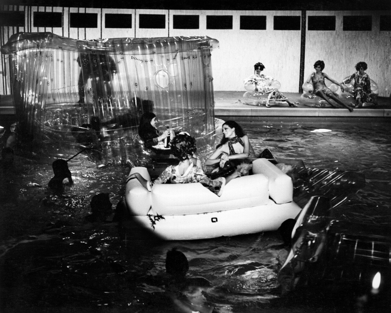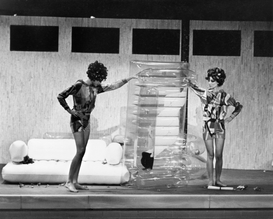 Una sfilata che diventa oggi immagine di un tempo passato, di quegli anni Sessanta in cui in Europa e in America nascono tutta una nuova serie di nuovi esperimenti in architettura, in design e in arte sul tema “gonfiabile”. Di un tempo in cui artisti, progettisti e designer, ancora appesantiti dal Dopoguerra, spingono alle estreme conseguenze la loro ricerca, procedendo verso nuove forme di abitare e di occupare lo spazio.