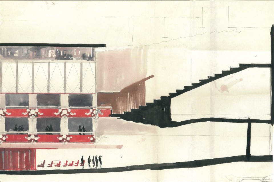 Una materia fastosa e atemporale che concede l’accesso a pochi nuovi eletti, si tratti delle persone del festival, oppure di un pugno di episodi del Moderno: la piscina proprio del Royal, mosaici e forme organiche con cui Gio Ponti negli anni ’50 porta avanti i fasti della grande villeggiatura; la marina di Capo Nero di Luigi Carlo Daneri, che all’inaugurazione delle sue masse astratte ancorate tra onde, roccia e pini (con qualche concessione brutalista), si prende i complimenti di Le Corbusier; e poi c’è l’Ariston.