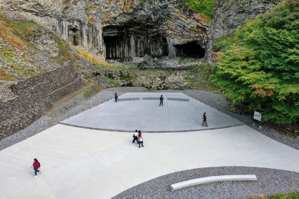 Il Genbu-do Park di Toyooka City, a ovest della Prefettura di Hyogo in Giappone, è un geoparco dove si trovano i cosiddetti giunti colonnari, strutture geologiche – prismi poligonali o colonne – formatisi più di un milione di anni fa in seguito al raffreddamento e alla solidificazione del magma. La riqualificazione del parco è stata affidata allo studio Case-Real per dare forma a nuovi percorsi che permettessero ai visitatori di ammirare in sicurezza le grotte e le particolari formazioni geologiche simili a sculture.