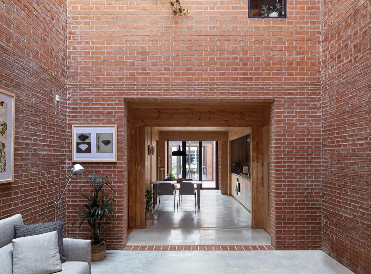 La casa unifamiliare a Granollers, in Catalogna, di cui Harquitectes ha curato il rifacimento totale, si trova incastonata tra due edifici affacciati sulla strada. La struttura, in facciata caratterizzata da mattoni rossi, è alta 14 metri e profonda altrettanti. Il progetto si sviluppa quindi in altezza per fare entrare più luce rispetto all’abitazione originale – l’assetto delle case del quartiere ne impediva infatti l’ingresso – e va a sfruttare al massimo lo spazio disponibile, nei limiti dei regolamenti urbanistici della zona.