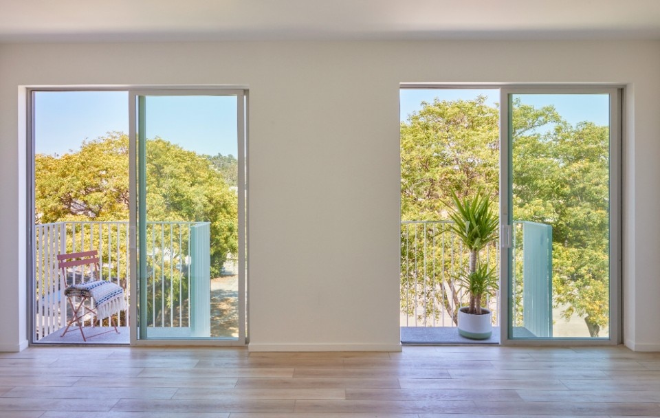 Sulle nitide facciate, alcuni piccoli scarti volumetrici, ampi serramenti nelle zone giorno e soprattutto un sapiente gioco compositivo di balconi e ringhiere animano i prospetti che offrono all’abitante un affaccio tridimensionale che nella sua asimmetria rende dinamico il risultato.