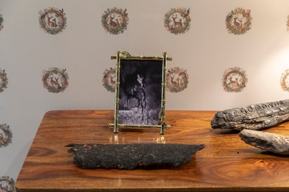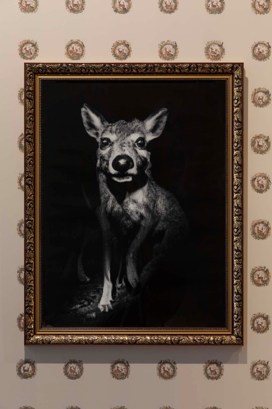 La mostra collettiva “Nine Nodes of Non-being” indaga sul tema dell’estinzione come conseguenza del collasso dell’ecosistema naturale e antropico che la società tende ad ignorare, e del risveglio di una nuova coscienza. Nove artisti aprono al dubbio come viatico per acquisire una nuova consapevolezza. Tra questi, UNMAKE LAB introduce il nonsense nella confort zone di un salotto domestico come occasione di “risveglio” critico: le fotografie ai muri mostrano animali apparentemente verosimili ma creati dall’AI e irreali, che introiettano il fantasma dell’incerto nella quiete dell’ordinario (Domestic Animal Syndrome, Oracles).