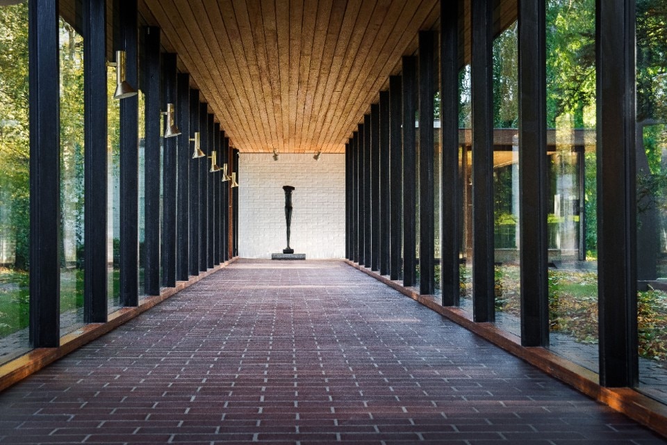 Gli architetti coinvolti furono Jørgen Bo e Vilhelm Wohlert che magistralmente riuscirono a interpretare questa visione olistica proponendo un progetto progressivo che partendo dalla villa, che rimane il punto di ingresso e accoglienza, si snoda orizzontalmente nel parco, con misura e discrezione, sintetizzando un linguaggio tipicamente scandinavo, con i tratti del modernismo organico americano e quelli dell’architettura minimale giapponese.