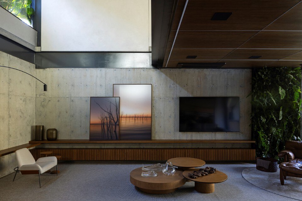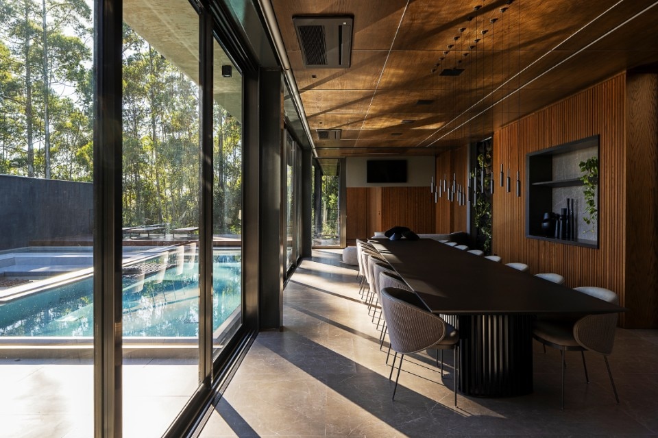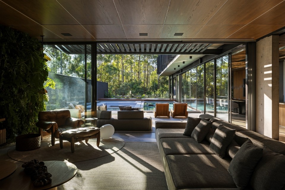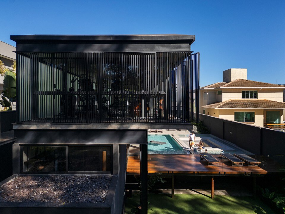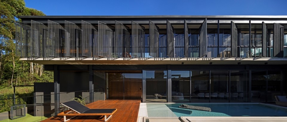 A Nova Lima, nella parte centro-meridionale del Brasile, Arquitetos Associados + Biri hanno progettato una casa che, come una penisola, si espande verso il giardino con piscina.