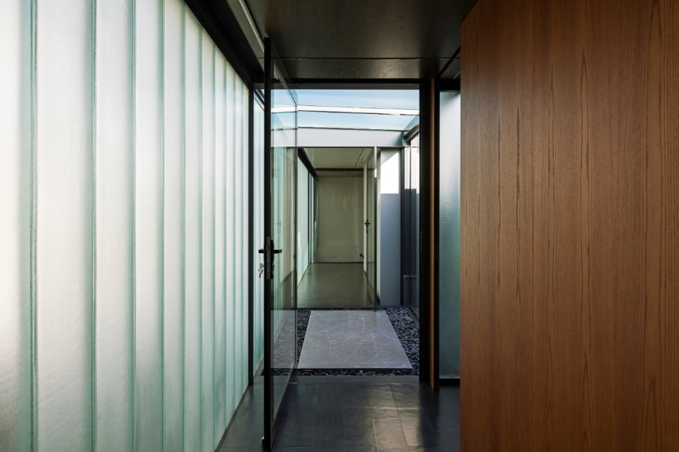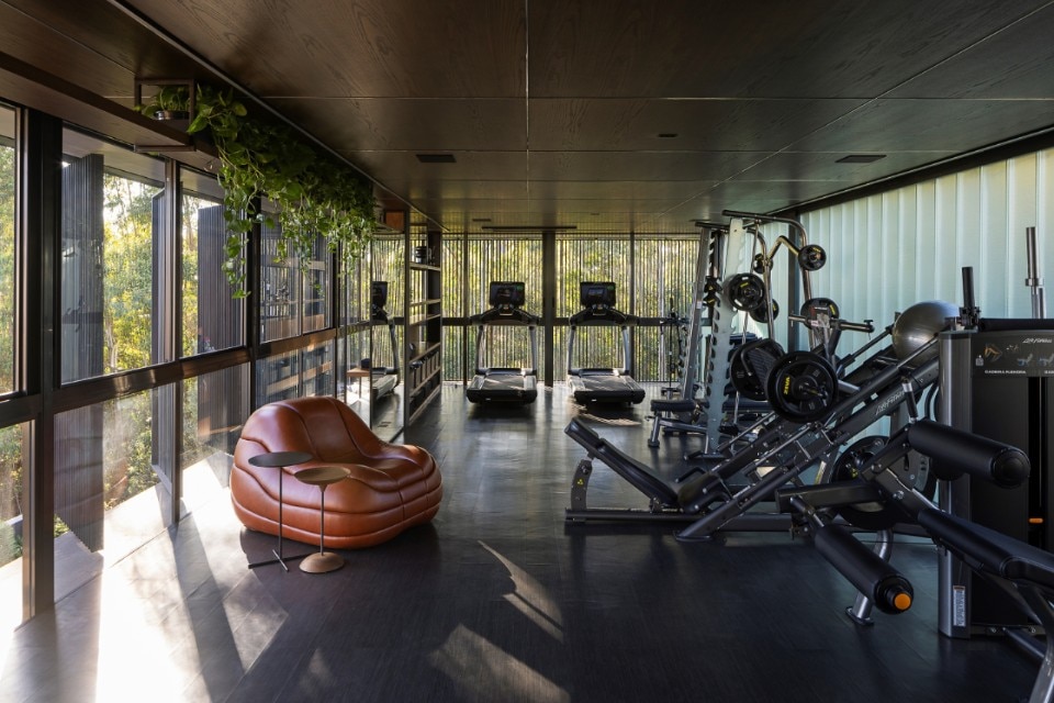 Un lessico di geometrie rigorose e di materiali naturali dichiaratamente esibiti conferisce alla costruzione un carattere robusto e minimale ma accogliente, grazie ai contrasti tra l’involucro strutturale in cemento e acciaio e le finiture interne di pareti e controsoffitti in legno dai toni caldi.