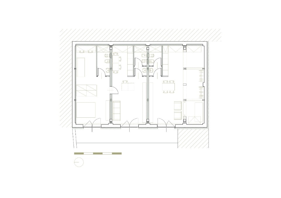 L’intervento ha visto la divisione del capannone in due unità immobiliari distinte, ciascuna destinata a uno dei due fratelli. Prima di essere trasformato in abitazione, l’immobile è stato sottoposto a significativi lavori di adeguamento antisismico e di miglioramento dell’isolamento termico e acustico. “L’intento progettuale è stato quello di recuperare l’immobile esistente attraverso un intervento che ne salvaguardasse il carattere” – si legge nella relazione di progetto.