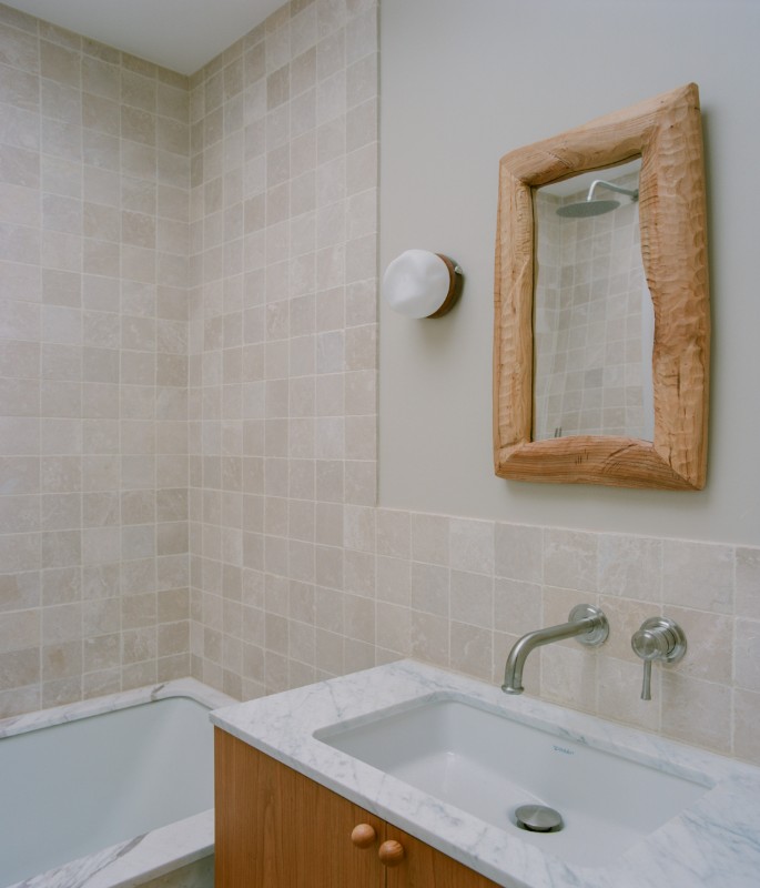 Una raffinatezza stemperata, però, da tocchi giocosi, leggibili negli oblò che perforano la facciata ovest, nel portacandele sul pianerottolo che introduce una rivisitazione anticonvenzionale dell’illuminazione domestica, nella balaustra della scala con cavi in acciaio e perline di legno, riproposta anche nelle cerniere delle scaffalature su misura delle camere da letto, che ricorda un pallottoliere.
