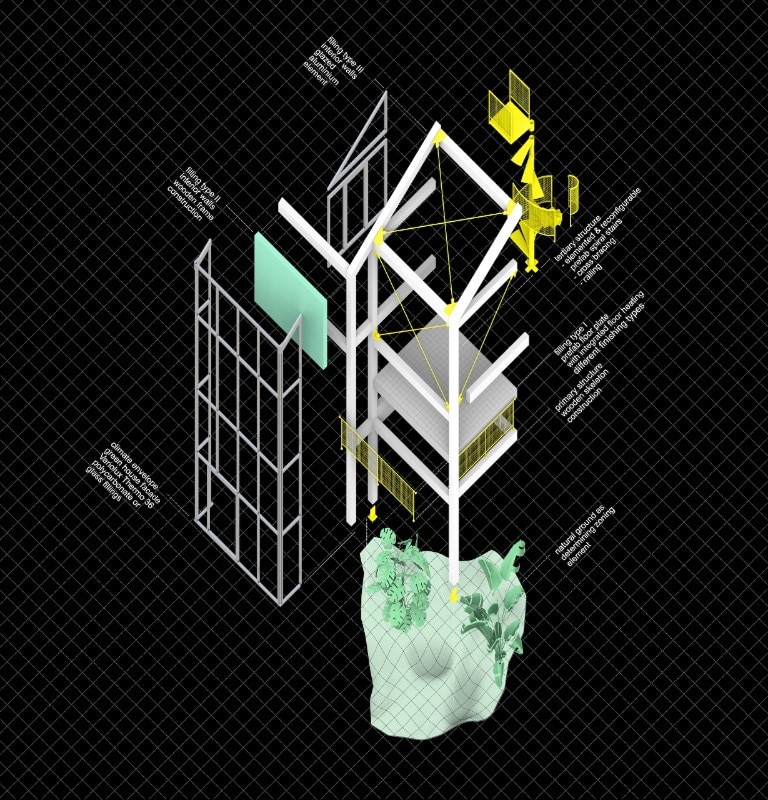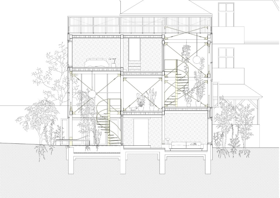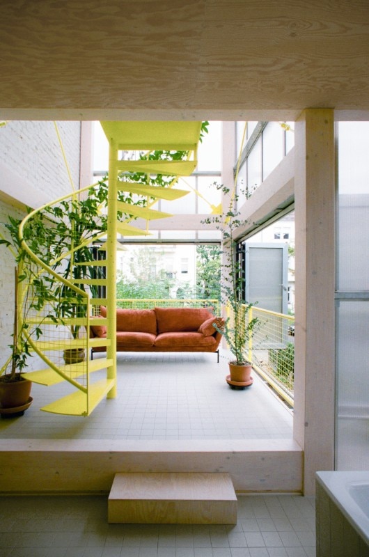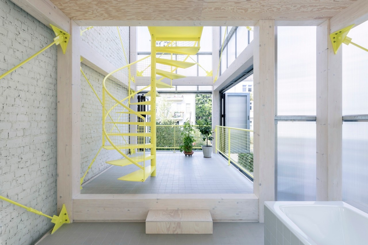Il progetto del collettivo berlinese Supertype Group sembra uno di quei concept che ai tempi di Aldo Van Eyck si immaginavano per poter abitare il “realm of the in-between”. Solo che questa volta la “terra di mezzo” è molto più solida rispetto a quegli spazi fatti di relazioni sociali nate sulle soglie delle case, cui poi si doveva dare materialità: nel caso della Winter Garden House, lo spazio dell’in-between di cui si parla è una caratteristica tipica del tessuto abitativo di Pankow, nord di Berlino; è il vasto spazio che separa i vari edifici tardo-ottocenteschi in stile Guglielmino, lo spazio dove prima sorgevano piccole attività, e adesso si aprono macchie di verde ad uso delle residenze.
