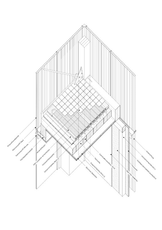 In uno di questi spazi è nato l’ampliamento di un edificio storico che, nel pensiero dei progettisti, è un prototipo insediativo: un parassita-serra, una struttura spaziale in legno rivestita in policarbonato traslucido, con una matrice aperta e regolare, nei cui moduli si possono installare a piacimento delle unità chiuse e termicamente isolate, a fare da stanze per la casa, oppure si possono lasciare unità di vuoto, combinandole fino a creare una zona di buffer termico – un giardino d’inverno, appunto – dove animali, vegetali e altri regni compagni possono convivere in una condizione di comfort lungo tutte le stagioni.