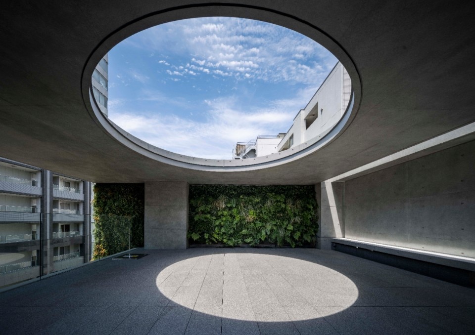 La produzione di Ando, autore anti-eclettico, è un corpus coerente in cui ricorrono soluzioni tipiche, perfezionate e variate nel tempo. La Villa a Ginza non fa eccezione. Vi si ritrova il suo dispositivo più riconoscibile, il paramento di cemento a vista, modulato sulla dimensione del tatami, che è sia prospetto urbano che parete interna. La terrazza in quota – Sky Garden, nella definizione del suo progettista – osserva il cielo attraverso un lucernario circolare, che ripropone una geometria prediletta da Ando e conferma le risonanze tra le sue ricerche sulla luce e la percezione e quelle di movimenti artistici come il Light and Space americano degli anni Sessanta.