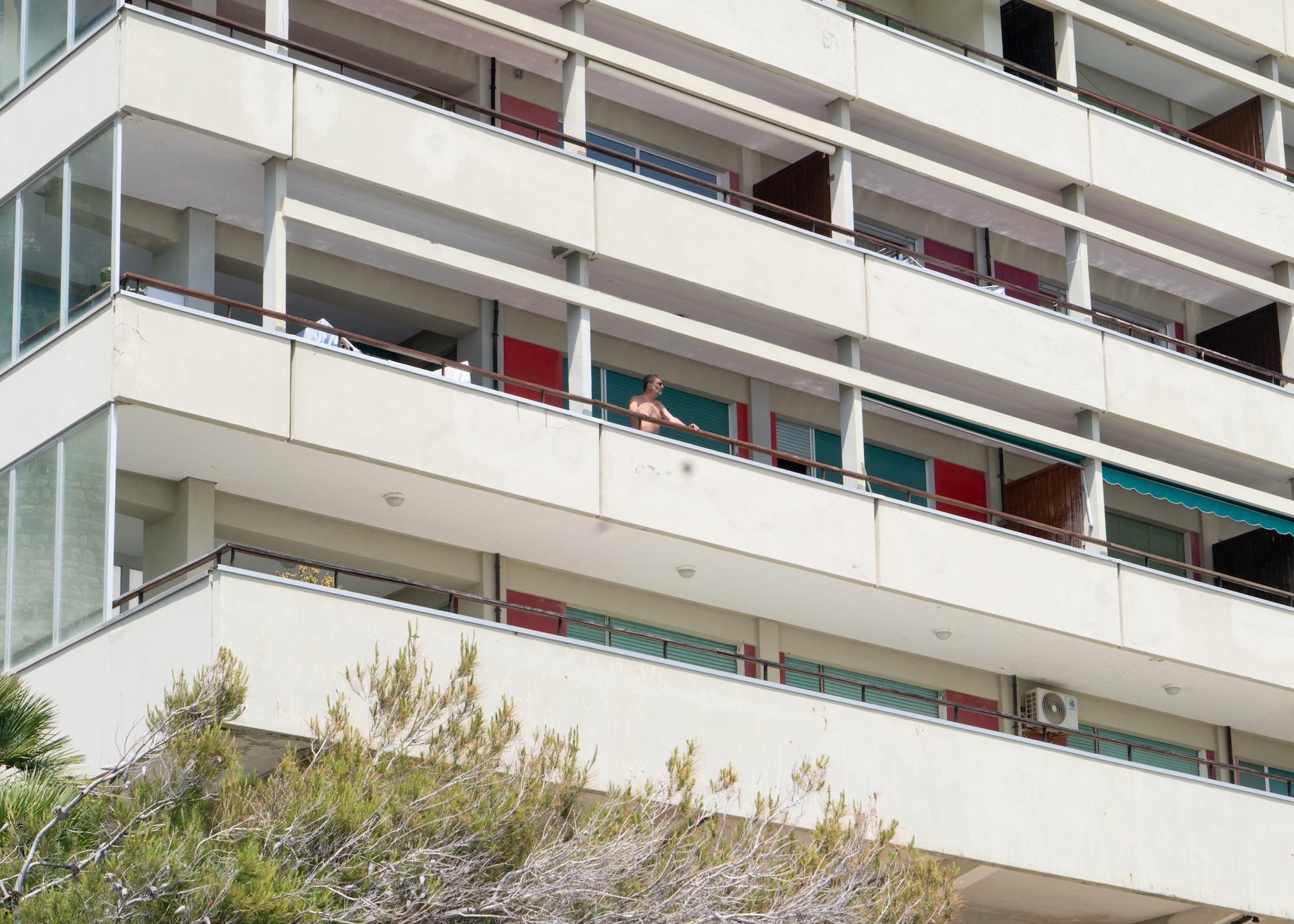 Il complesso denominato Capo Pino è di nuovo una cascata serrata e ritmata, stavolta in cemento a vista, ma le unità a terra sono duplex, la vista è la priorità senza compromessi, l’attenzione agli spazi di relazione è altissima, con una spiaggia dichiaratamente artificiale ma orientata e proporzionata, così come per il vicino Capo Nero, dove l’edificio è in linea (e torna il Serpentone), assemblaggio di blocchi in linea uniti da un corridoio in altezza (e torna l’Unité) in cui si susseguono grandi appartamenti tutti finestre a nastro, riuniti in un pattern dal tratto pittorico astratto delle tende da sole verdi.