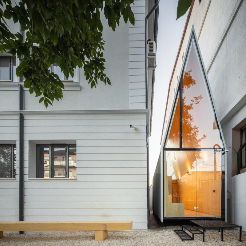 Incastrata in uno spazio interstiziale tra due edifici, a nord-ovest della capitale rumena, la caffetteria The Chapel è un esempio di progettazione dei micro-spazi. L’operazione dello studio Vinklu è stata quella di trasformare un lotto da 3x6 metri in un oggetto architettonico d’impatto, con la sua forma semplice ed eccentrica al tempo stesso.