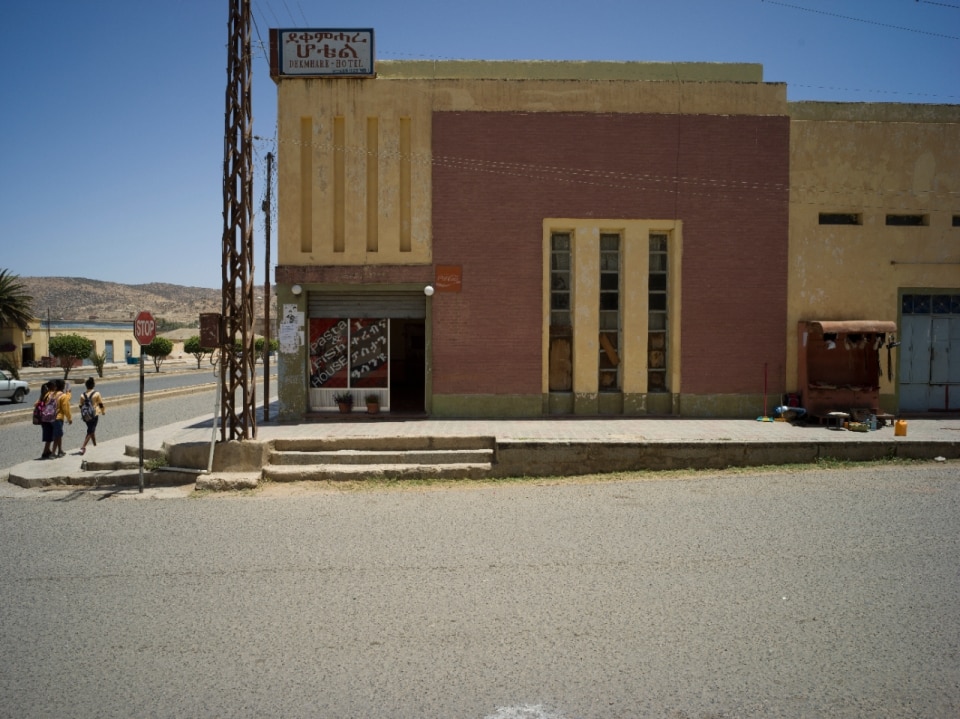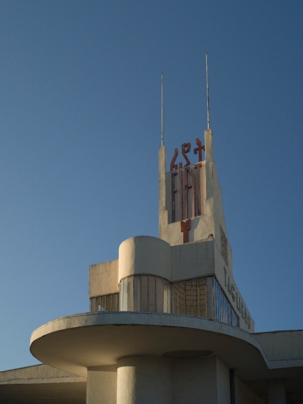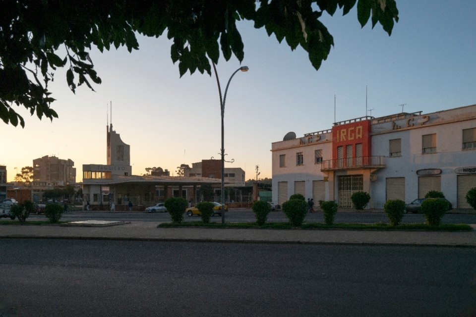 Trasposizione degli ideali urbanistici del fascismo, il tessuto urbano di Asmara vanta una coesione architettonica d’eccezione puntellata di landmark quali chiese, cinema, bar, o vecchie sedi di aziende del Bel Paese. Per gli italiani, il sentimento di familiarità può essere straniante, sia per la consuetudine al linguaggio del razionalismo, sia per l’immagine da cartolina, sospesa nel tempo e ammantata di presunto buonismo, che questa città-scenografia sembra emanare.