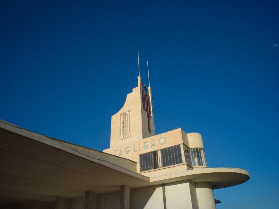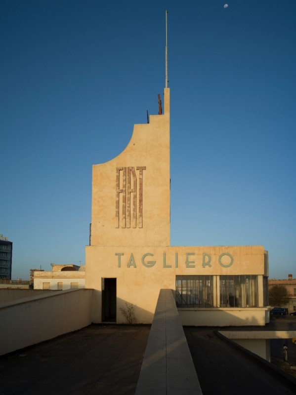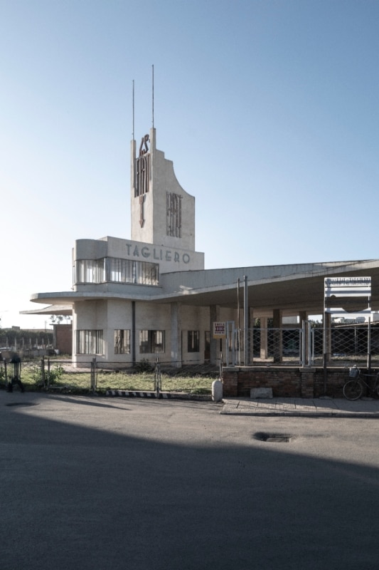 Il progetto della Fiat Tagliero è la storia di un’avanguardia architettonica che, prendendo corpo fuori dai confini della penisola italiana, trova la possibilità di sperimentare con maggiore autonomia, sfuggendo ai criteri più tradizionalisti che vigevano in Italia. L’edificio, una autofficina e pompa di benzina della Fiat, fu progettato da Giuseppe Pettazzi e inaugurato nel 1938. L’architetto si ispirò alla forma di un aeroplano, sotto l’impulso, come ci racconta Ratti, del Manifesto dell’Architettura Aerea che l’architetto futurista Angiolo Mazzoni pubblicò nel 1934 insieme a Filippo Tommaso Marinetti e Mino Somenzi. La struttura si distingue per la presenza di una torre centrale, dove erano ubicati un negozio e un ufficio, da cui si dispiegano due pensiline a sbalzo di quindici metri l’una, realizzate in calcestruzzo e caratterizzate da una linea aerodinamica propria di un velivolo. Furono proprio queste ali-pensilina che gli valsero il soprannome di “aeroplano”, e furono sempre loro ad alimentare il racconto esilarante dell’inaugurazione dell’autofficina.