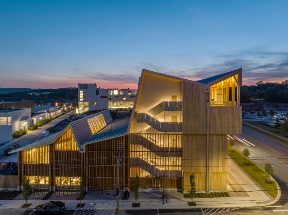 All’interno del Fay Jones School of Architecture and Design a Fayetteville, in Arkansas, Grafton Architects (Pritzker Prize 2020) ha realizzato, con la collaborazione di Modus Studio, l'Anthony Timberlands Center, primo edificio statunitense dello studio, che impiega il legno come materiale “principe” della composizione.