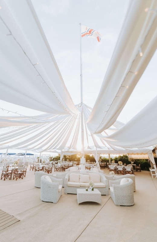 Sulla spiaggia di fronte alla struttura, l’Augustus Beach Club prosegue questa idea di ospitalità, estendendola fino alla riva del mare. Qui gli Agnelli avevano la loro spiaggia privata e un eliporto per i rapidi spostamenti dal Piemonte. Con le sue tende ombreggiate e la disposizione curata di lettini e baldacchini, il club restituisce alla spiaggia un ritmo più intimo e misurato, dove ogni dettaglio invita a rallentare.