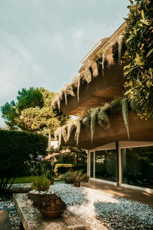 Le origini dell’Augustus Hotel risalgono ad Augusta Pesenti, che nel 1953 trasformò la sua residenza modernista – Villa Pesenti – in un hotel. In collaborazione con il grande architetto Osvaldo Borsani, diede forma a una nuova idea di ospitalità: informale ma raffinata, profondamente legata alla natura. Immerso in un rigoglioso parco privato, il complesso prese vita come una “collezione di ville”, anticipando il concetto di residenza diffusa, ora più conosciuto: un resort fatto di affascinanti architetture autonome e rigogliosi giardini, dove lo spazio seguiva il ritmo quieto della vita quotidiana.