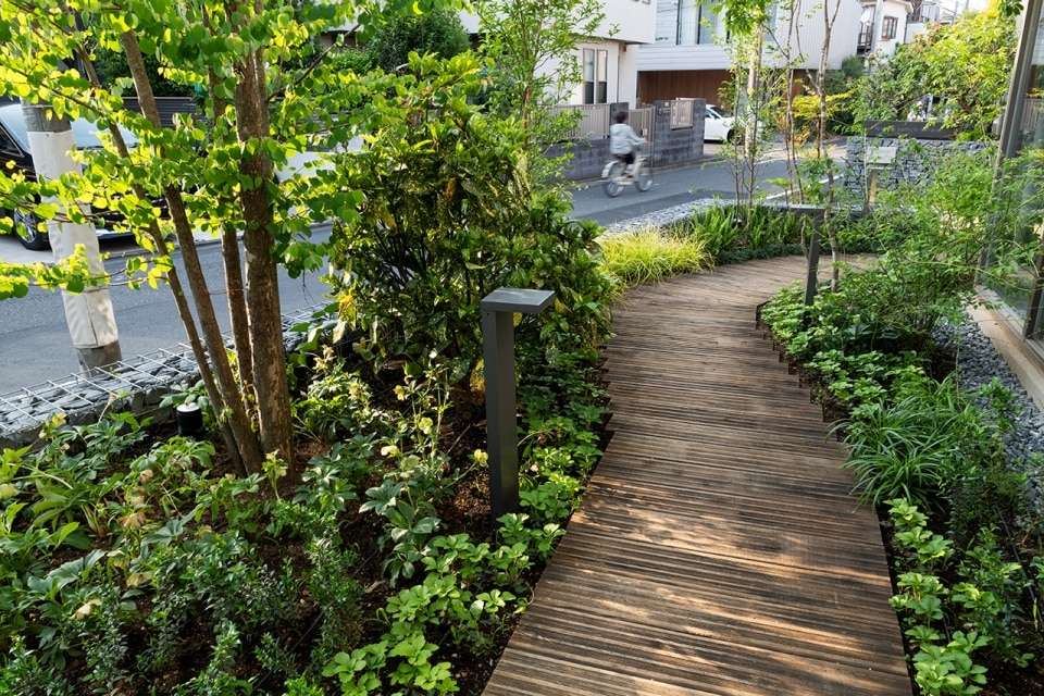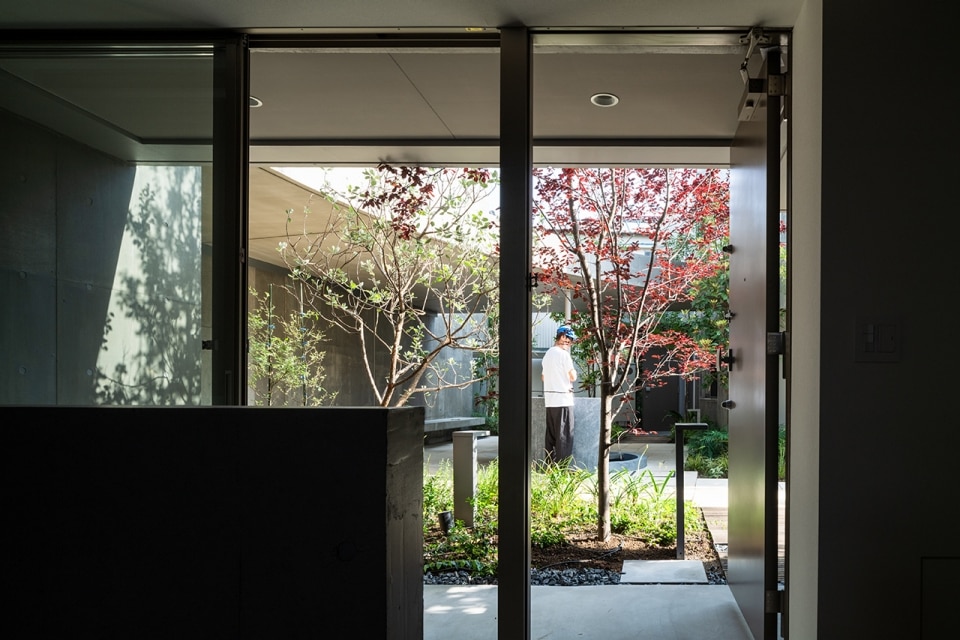 Nel contesto residenziale di Suginami a Tokyo sorge un cluster di case a schiera, tutte organizzate intorno a un percorso progettato come un vero e proprio tessuto connettivo e permeabile.