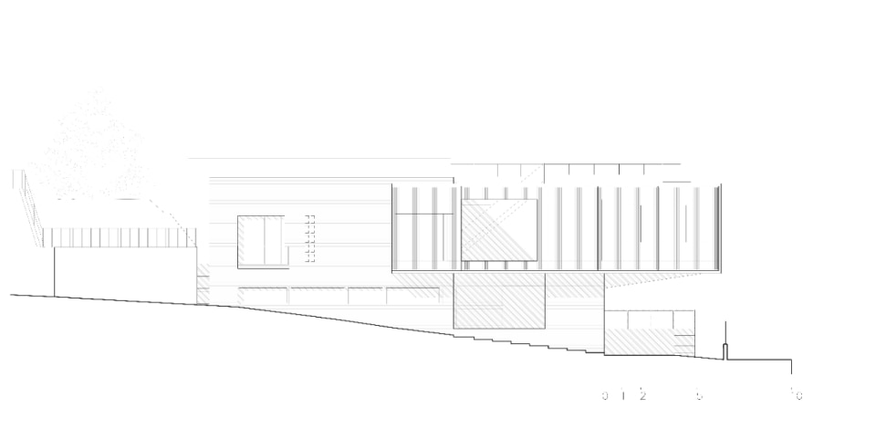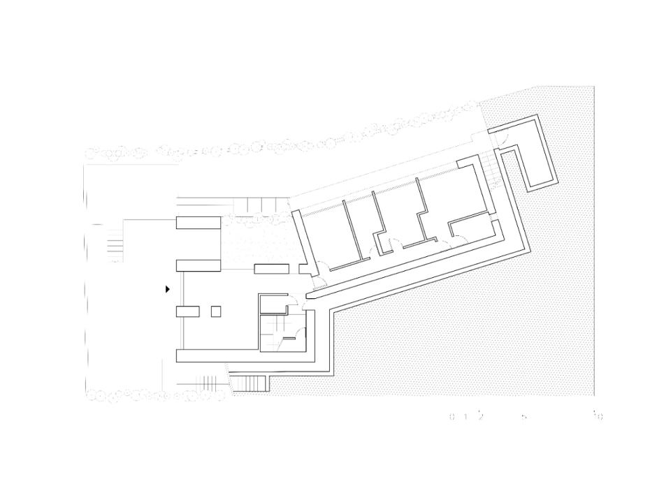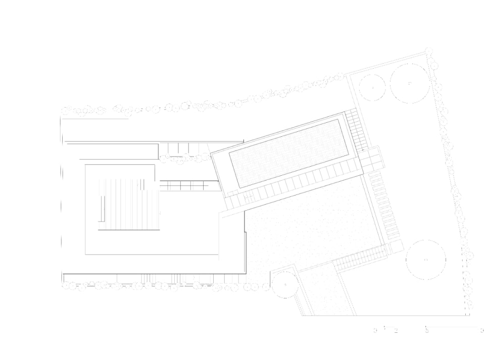 Il complesso nasce da un’aggregazione di volumi essenziali su due livelli, che si adagiano sull’orografia del terreno incastonandosi nel declivio: un corpo principale, “proiettato” verso il lago, che ospita gli spazi comuni, un secondo volume parallelepipedo, arretrato, che ospita gli ambienti privati e un terzo contro terra, in ampliamento, che racchiude il cortile di ingresso. In copertura, il solarium e la piscina offrono una vista spettacolare sul lago e sulle montagne.
