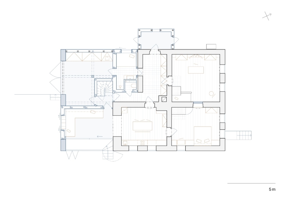 Rileggendo il naturale processo di stratificazione storica del fabbricato senza cancellarne la memoria, il progetto ha introdotto all’interno dell’involucro esistente un nuovo “livello” chiaramente leggibile di inserimenti volumetrici e strutturali, che va a ricomporre l’efficienza statica, funzionale ed energetica del cottage celebrandone la sopravvivenza nel tempo e riadattandolo con un tocco ludico e funzionale alle esigenze della vita contemporanea.