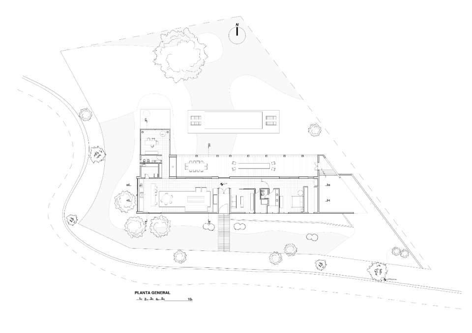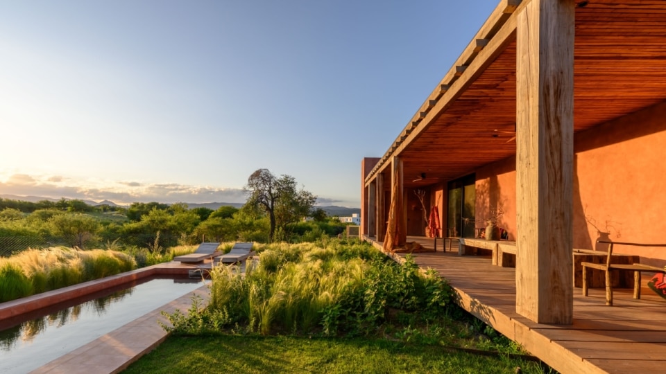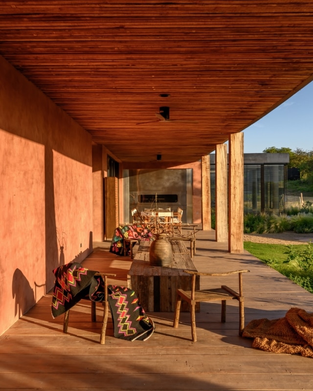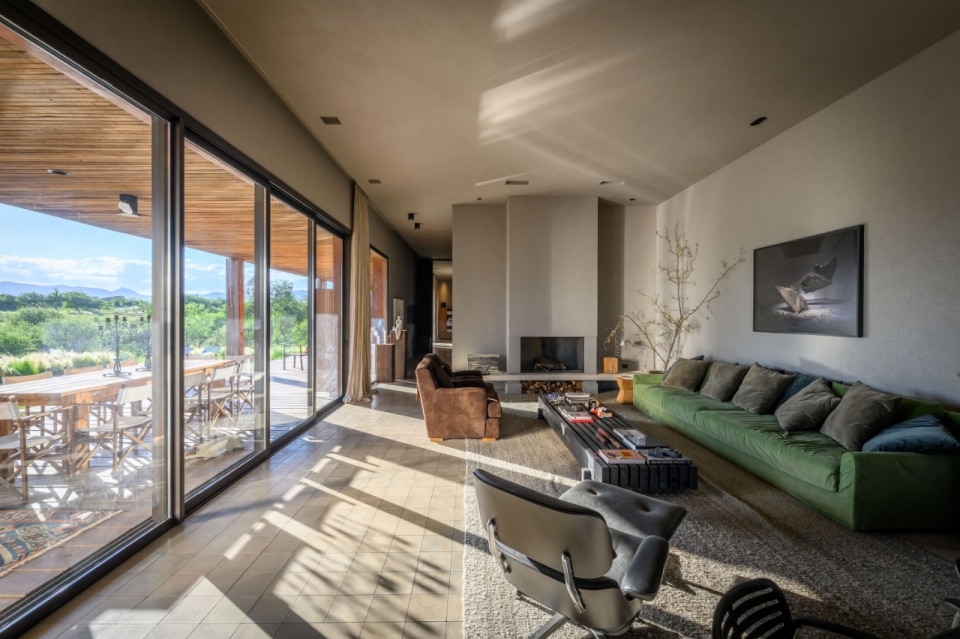 Immersa nel paesaggio rurale argentino, a pochi chilometri a nord di Cordoba, Casa BP si sviluppa longitudinalmente seguendo la topografia del sito. È dal territorio stesso che nasce il concept del progetto, un volume compatto e chiuso verso la strada, che si apre progressivamente sul fronte opposto per accogliere il paesaggio. Tutto sembra dialogare con il contesto, dalle superfici intonacate con colori che richiamano la terra, alla struttura lignea del portico, fino alle pareti forate che man mano dissolvono il rapporto tra interno ed esterno: un'architettura che interpreta il paesaggio come parte integrante del progetto.