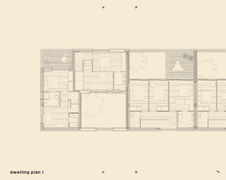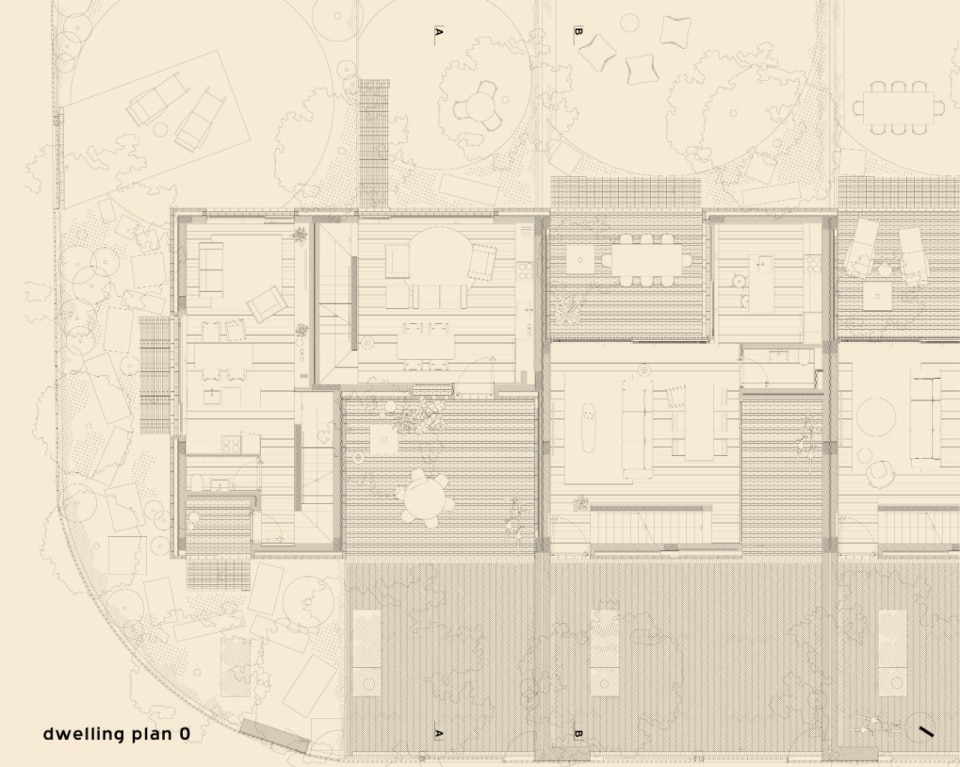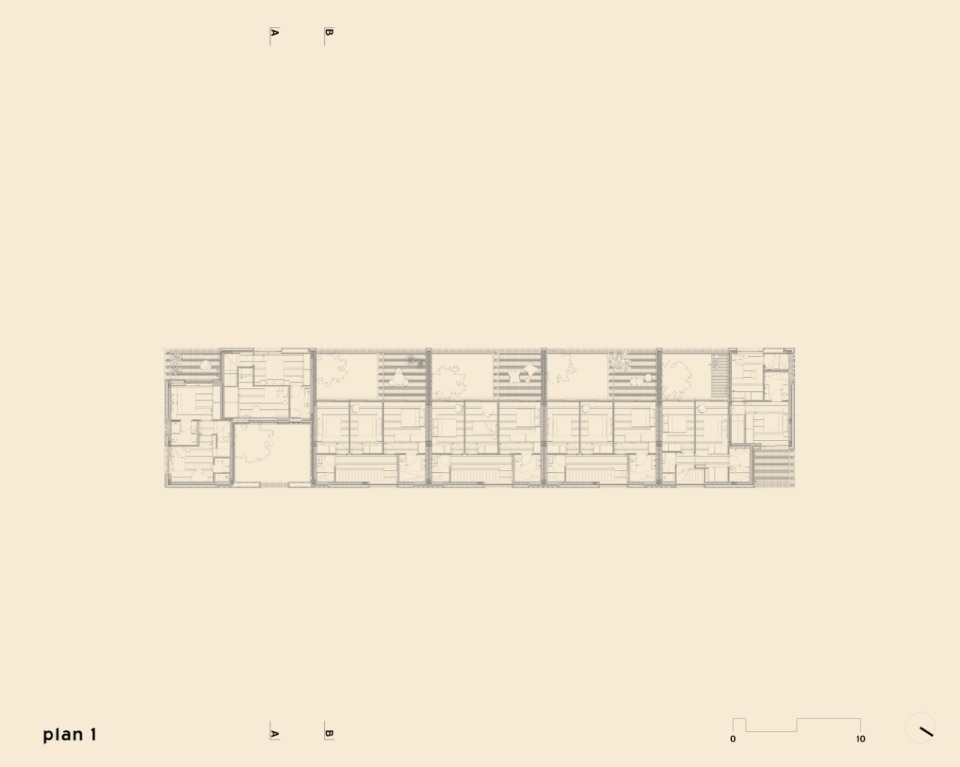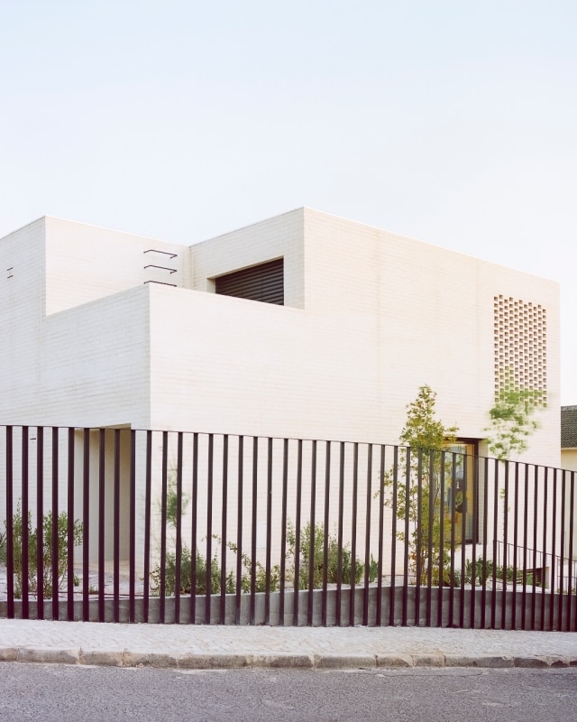 Nella cittadina costiera di Parede, nell’area metropolitana di Lisbona, Extrastudio ha esplorato una tipologia costruttiva e un lessico materico insoliti per il contesto locale, in un intervento che coniuga l'economia della residenza collettiva con i benefici della casa unifamiliare. Il progetto rilegge infatti il modello della casa a schiera – nato nel Regno Unito e diffuso in Portogallo quasi esclusivamente nell’area di Porto – aggiornandolo alle esigenze di flessibilità e accessibilità dell’abitare contemporaneo. Un calibrato gioco planivolumetrico scandisce la sequenza di sette unità su due piani sopra il livello stradale, articolate attorno a patii interni e con giardini privati sul retro. Negli involucri, il mattone bianco al posto delle consuete pareti intonacate, tipiche della zona, fa riaffiorare la memoria materica di questa tipologia edilizia “importata”, contestualizzandola alle cromie candide del Sud.