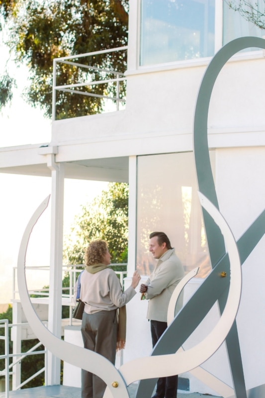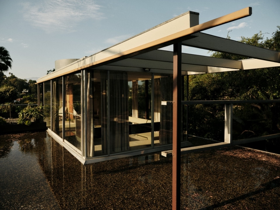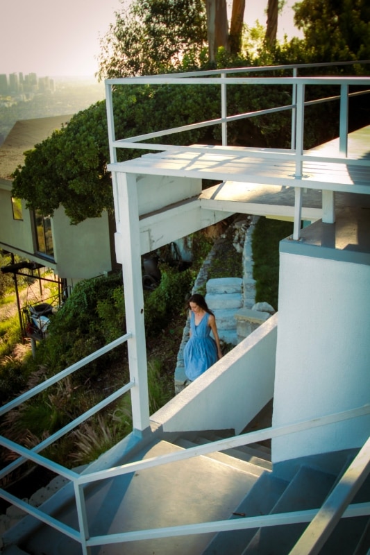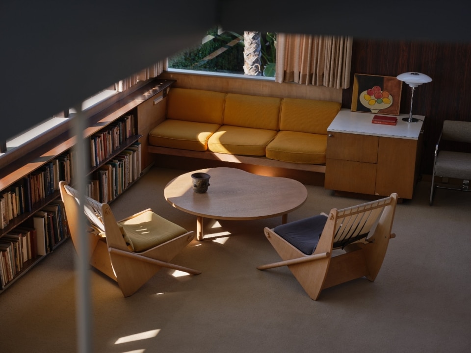 Situata su un crinale sopra Sunset Boulevard, la casa offre al tempo stesso isolamento e una connessione visiva continua con la città, diventando un luogo ideale di lavoro e confronto per artisti e intellettuali.