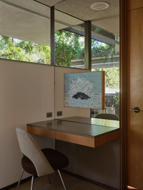 Durante la Frieze Week, dal 26 febbraio al 1 marzo 2026, ospita The Sky Between Us dell’artista losangelino John Zabawa, una mostra di pittura sviluppata per questo contesto. I dipinti si inseriscono tra soggiorno, corridoi e stanze private, raffigurando interni, scorci urbani e paesaggi della California meridionale. Installate nello spazio domestico, le opere entrano in dialogo con l’architettura e con la continuità tra interno ed esterno che definisce il progetto di Neutra, riportando la casa alla sua funzione originaria di luogo di osservazione e produzione culturale.