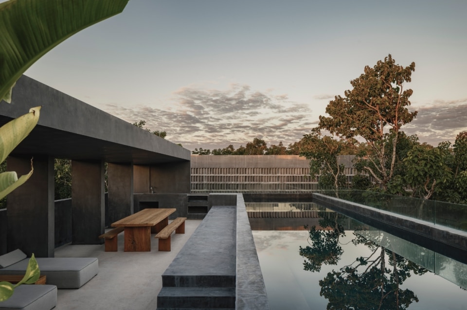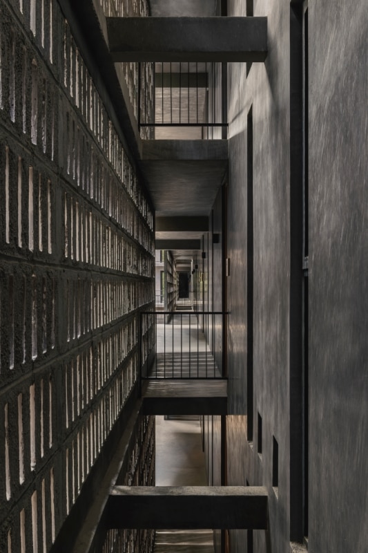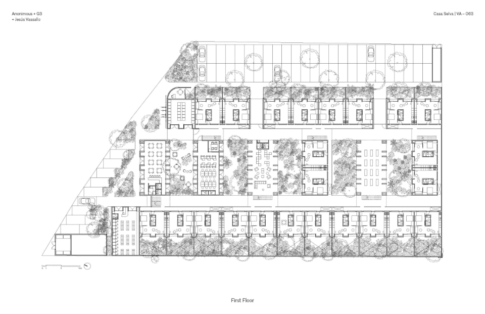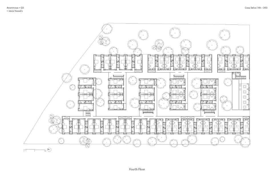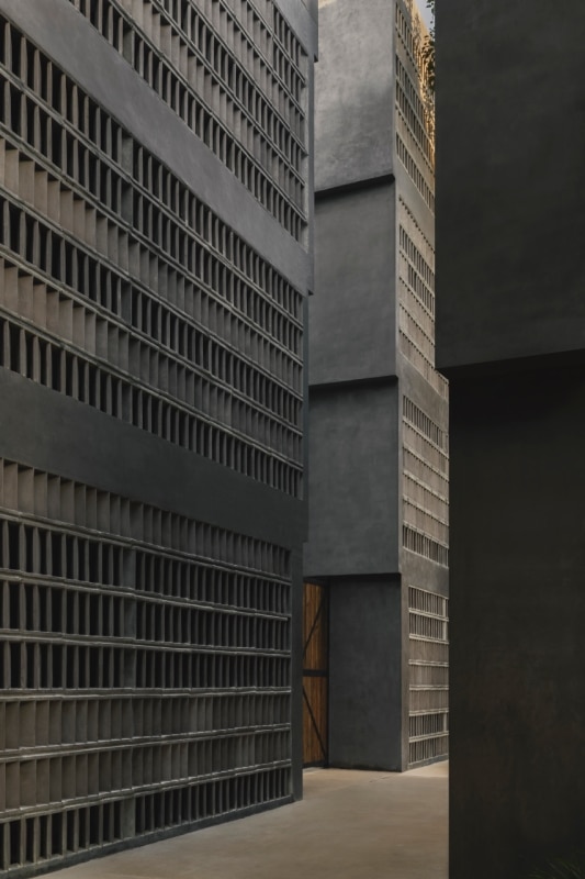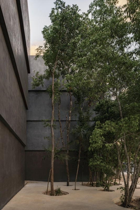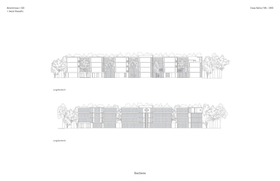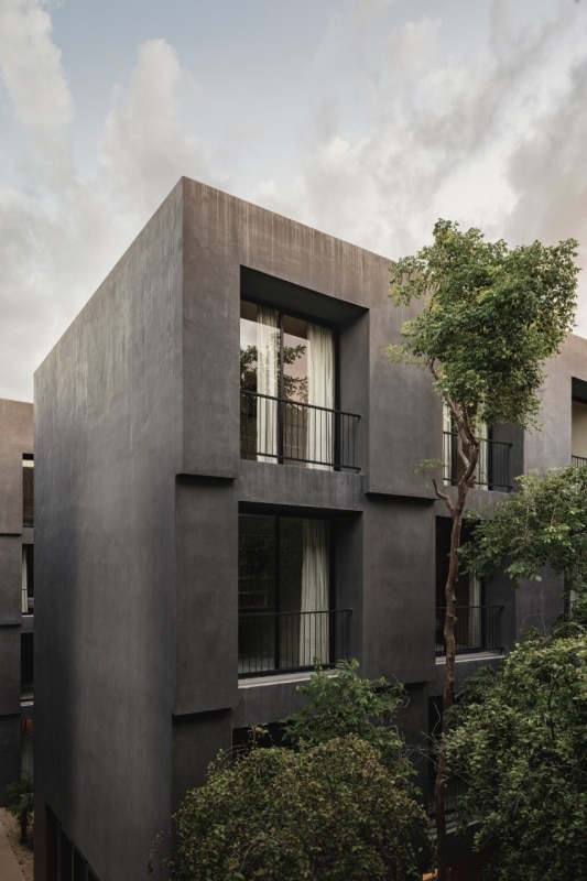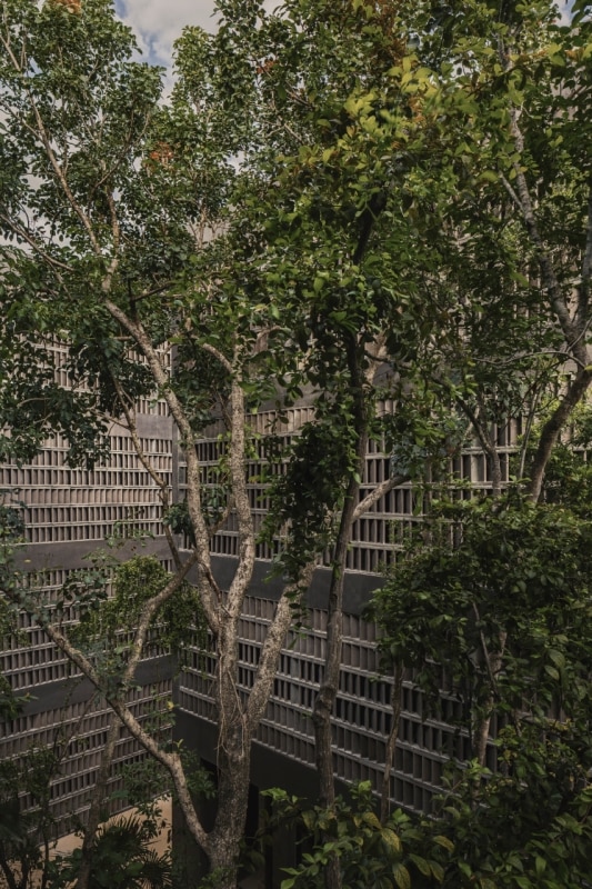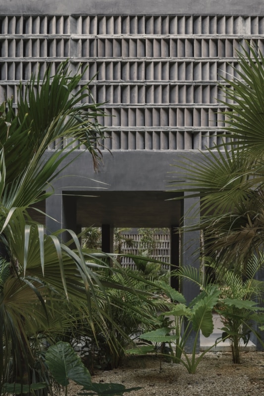 Ai margini di Tulum, una meta turistica messicana molto ambita, Anonimous + G3 + Jesús Vassallo hanno progettato un complesso residenziale ad alta densità che integra intensità espressiva e qualità spaziale. I volumi scarni e rigorosi in cemento scuro evocano il romanticismo di un paesaggio ancestrale immerso nella foresta, e la composta monumentalità di un brutalismo delle origini. L’intervento comprende 200 alloggi a prezzi accessibili per il personale che lavora nella locale industria del turismo e della ristorazione, e presenta un impianto rigoroso e compatto che ibrida il blocco a corte con la tipologia lineare. Gli edifici di quattro piani si intrecciano in una configurazione a pettine e sono intervallati da una rete di cortili punteggiati da vegetazione tropicale, connessi tra loro da percorsi pedonali e spazi pubblici. Lungo i corridoi comuni, schermature frangisole - evocative del tradizionale cobogò sudamericano - rendono porosa la massa costruita, e la arricchiscono di drammatici giochi chiaroscurali. Ai piani, gli alloggi semplici e funzionali godono di affacci opposti, a beneficio di generosa illuminazione naturale, ventilazione incrociata e interazioni continue con il paesaggio vegetale.