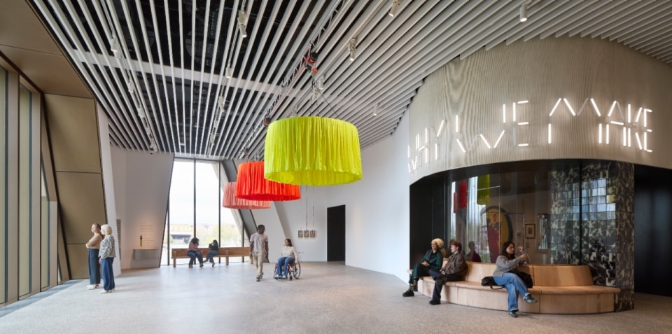 È all’interno del V&A East che questa combinazione di spettacolo e rotazione dell’esperienza trova una nuova dignità. Gli interni - che si sviluppano su cinque livelli pubblici contenenti due gallerie permanenti, una galleria per mostre temporanee di 900 mq, uno spazio per eventi, strutture per l'apprendimento, negozi e un caffè - si sentono intimi e avvolgenti, contrastando l'imperativo di stupore promosso dalle proporzioni architettoniche delle istituzioni tradizionali. Qui gli spazi sono più simili a contenitori che supportano esposizioni mutevoli e adattabili. In un certo senso, il museo si avvicina al formato della fiera del design, in grado di offrire ciò per cui migliaia di persone si recano a Milano ogni anno: una fetta di cultura e di spirito che offre un’esperienza culturale intensa, ma non necessariamente duratura.