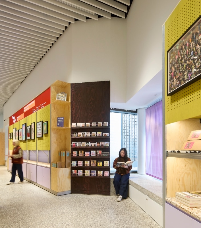 L’allontanamento da basamenti fissi, materiali uniformi e layout rigidi prosegue anche negli spazi commerciali, progettati da Studio Mutt. Qui, la ricchezza dei materiali dell’originale museo V&A è stata reinterpretata con cura in una nuova tavolozza contemporanea, sempre con dettagli raffinati. Le unità in legno sono state progettate per essere mobili, in grado di incastrarsi in diverse configurazioni, richiamando ancora una volta un approccio museale fatto di flessibilità e adattabilità.