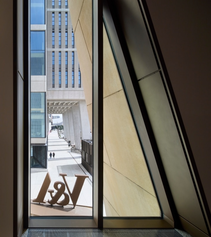 Progettato come un volume sfaccettato che richiama un abito astratto di Balenciaga, l’ultima aggiunta al cosiddetto quartiere culturale East Bank si legge come una versione lapidea e pixelata di un ragno di Louise Bourgeois: entrambi condividono l’obiettivo innato di nutrire ciò che contengono. Il brief, commissionato nel 2015, prevedeva di “progettare un museo accogliente, distintivo e aperto a tutti” , con una particolare attenzione ad attirare i “giovani”.