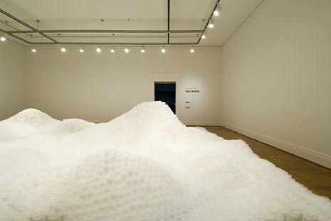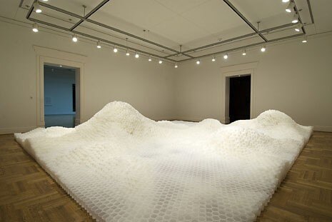 La sua ultima opera è anche la più monumentale: tre milioni di bicchieri di plastica bianca incollati sul pavimento della galleria newyorkese PaceWildenstein. L’installazione che suggerisce l’immagine di un paesaggio imbiancato dalla neve e increspato dal vento è riproposta (in dimensioni ridotte, 600.000 bicchieri) al St Louis Art Museum, che fino al 25 novembre dedica a Tara Donovan una mostra curata da Robin Clark. E.S.