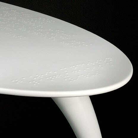 Infine, lo scorso ottobre è stato presentato il tavolo Moon, progettato da Eli Jacobsen con lo studio Giorgio Salvini & Partners: la superficie di appoggio (in Corian®) è trattata con una scritta in codice Braille che riproduce il testo di Language is a virus di Laurie Anderson. Silvia Monaco