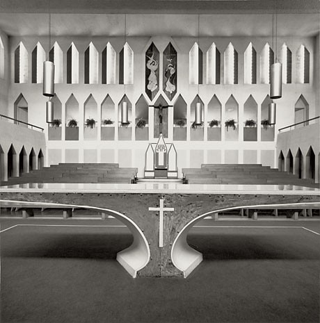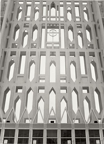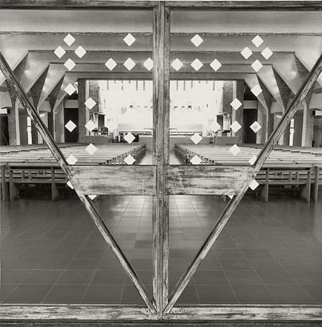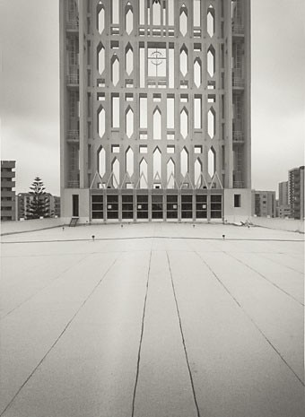 Ora, come poteva Mimmo Jodice affrontare un edificio di questo genere, Jodice autore nell'ormai lontano 1974 di un volume come Chi è devoto, da sempre attento alle manifestazioni della religiosità popolare e, al tempo stesso, frequentatore dei capolavori di una religiosità differente come quella che ha dato origine alle sculture e agli edifici del mondo classico mediterraneo, luogo privilegiato di ispirazione per lunghi anni? Un fotografo che, peraltro, ha abbandonato la rappresentazione della figura umana (almeno di quella vivente) ormai dal principio degli anni Ottanta, concentrandosi sul paesaggio e sulle architetture, o forse sarebbe meglio dire sui luoghi, senza per questo mai iscriversi all'interno di un genere tutto sommato ancora ben definito come la cosiddetta fotografia di architettura.