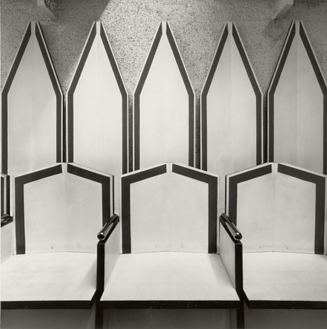 Ed è, questo, il senso del fotografare per Jodice, che in questa serie si concretizza, oltre che nella già ricordata immagine delle sedie, nel vetro, a sua volta caratterizzato da una struttura triangolare, che impedisce la visione diretta ed esplicita dell'interno; fotografare è riuscire a vedere attraverso un velo, un ostacolo, è insieme rivelazione e occultamento: niente di più e niente di meno. Walter Guadagnini