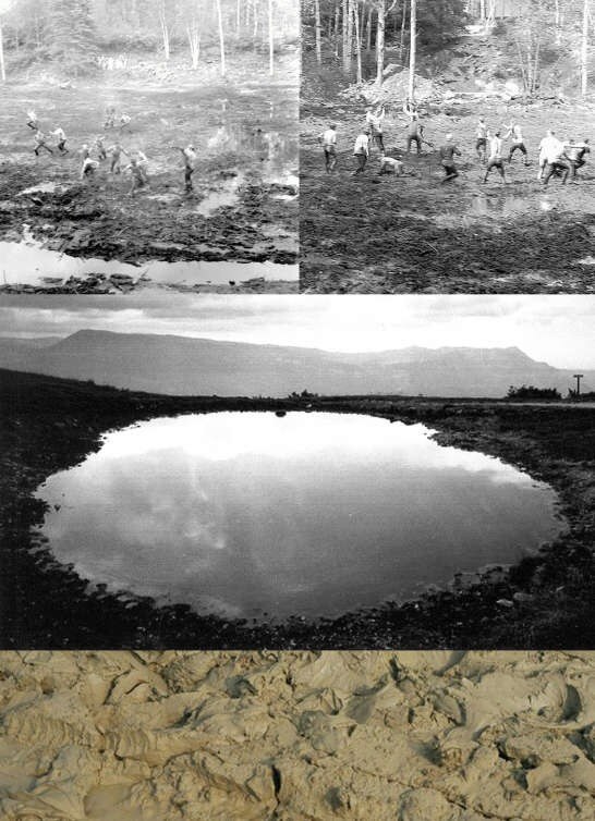 La palude potrebbe essere un deposito dei 'possibili' per lasciare delle tracce in uno spazio senza segni, immerso in un candore bellico e rissoso. Può essere un luogo magico; uno spazio del possibile fraintendimento che si potrebbe trasformare in un giardino di una residenza reale o in un vulcano in mezzo al deserto d'acqua deducendone un'equazione che metterà in relazione la palude e il vulcano con il fango e la cenere.
