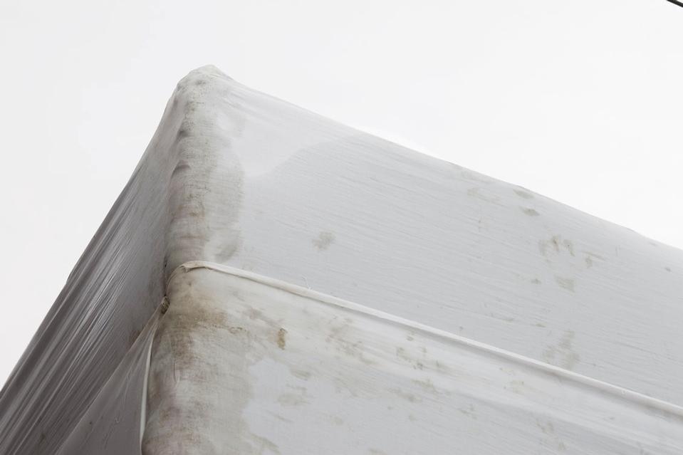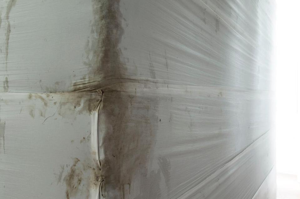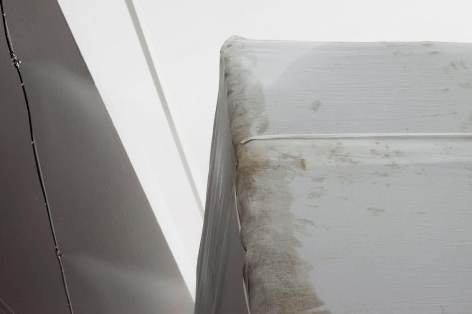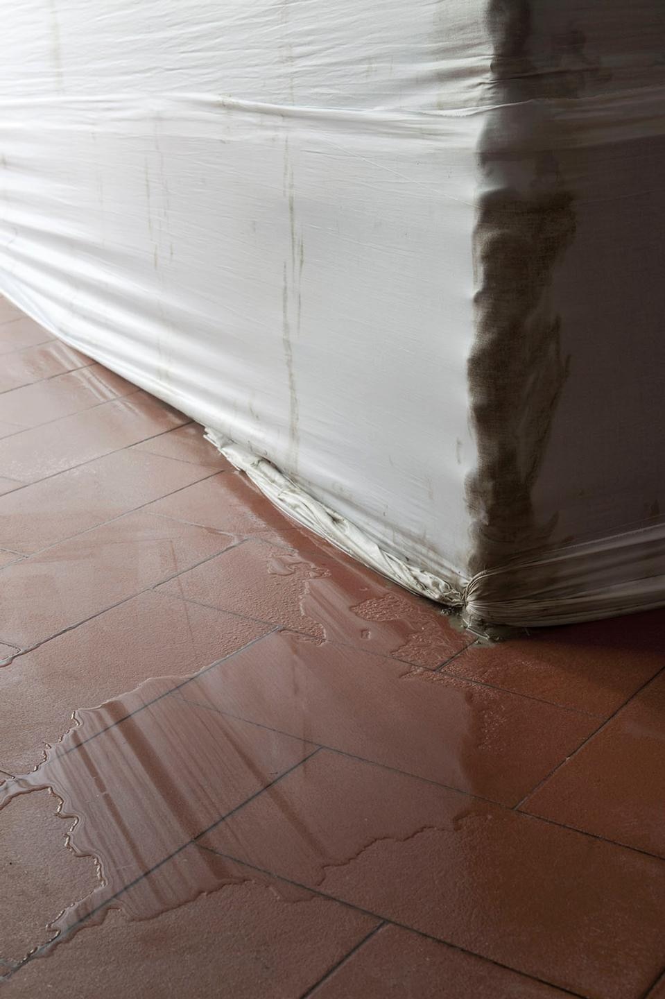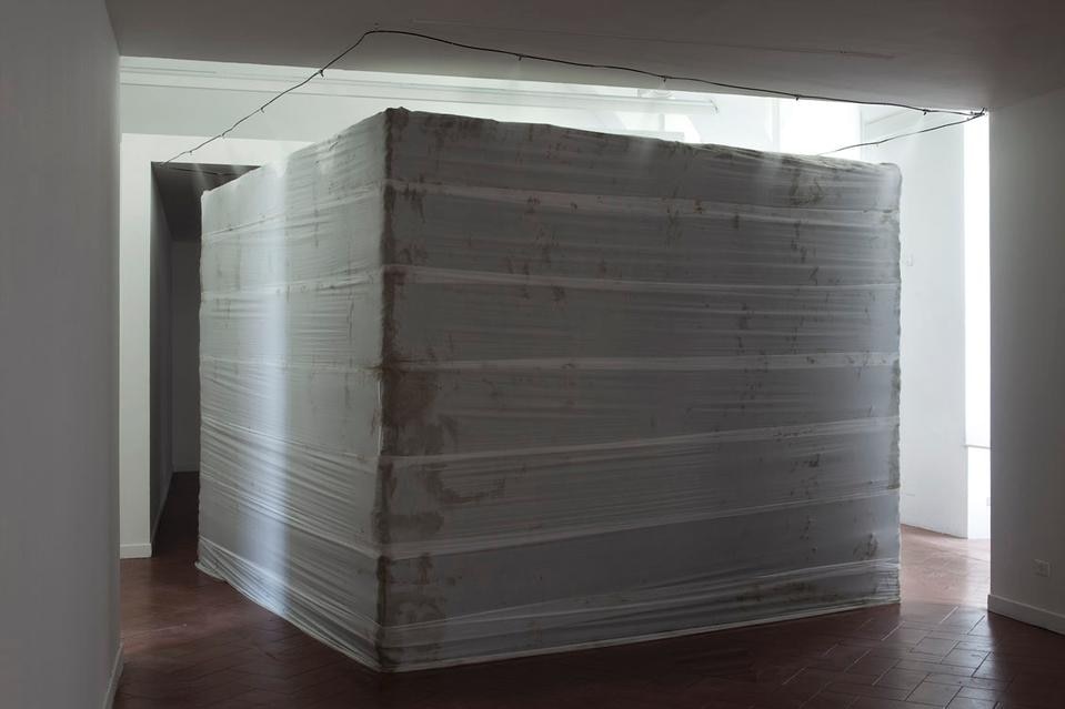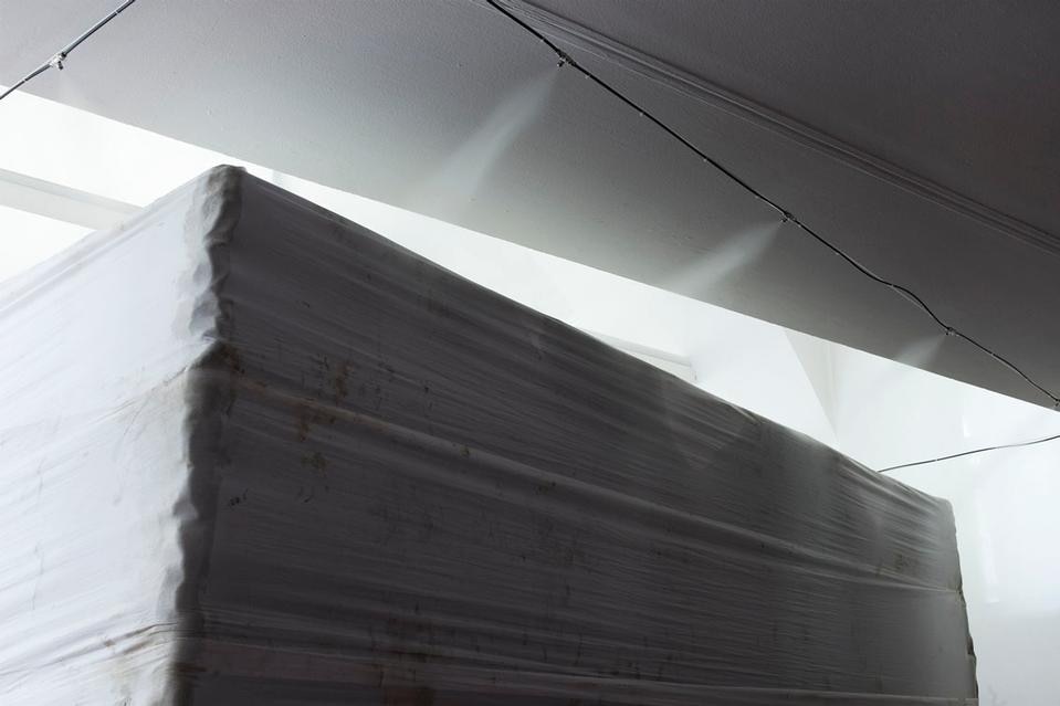 È lo stesso concetto di scultura pubblica e della rappresentazione che essa deve dare di un concetto così 'granitico' come l'identità nazionale a essere messa in discussione, sia dal punto di vista formale che materiale. La concretezza e la solidità dei valori che vengono evocati tramite l'opera di commemorazione vengono ben espressi dalla forma scelta per l'opera: un grande cubo grigio. A metterli in crisi, concettualmente, ci pensa invece la scelta dei materiali: acqua e creta, posti in relazione reciproca e tenuti insieme da bende che esaltano ulteriormente il carattere di precarietà dell'intera struttura. Niente di più distante dai classici materiali durevoli quali marmo e bronzo solitamente utilizzati in questi casi. "Leblon ha realizzato un organismo vivente intimamente fragile", racconta il curatore Alessandro Rabottini, "alimentato da un sistema idraulico che ha bisogno di costante manutenzione. L'acqua si infiltra ovunque ed è quindi in grado di mettere in discussione la forma costantemente, di modificarla, smussarla e trasformarla con una lenta opera di erosione e con la formazione di muffe".