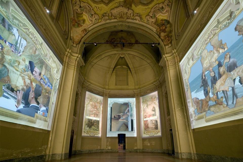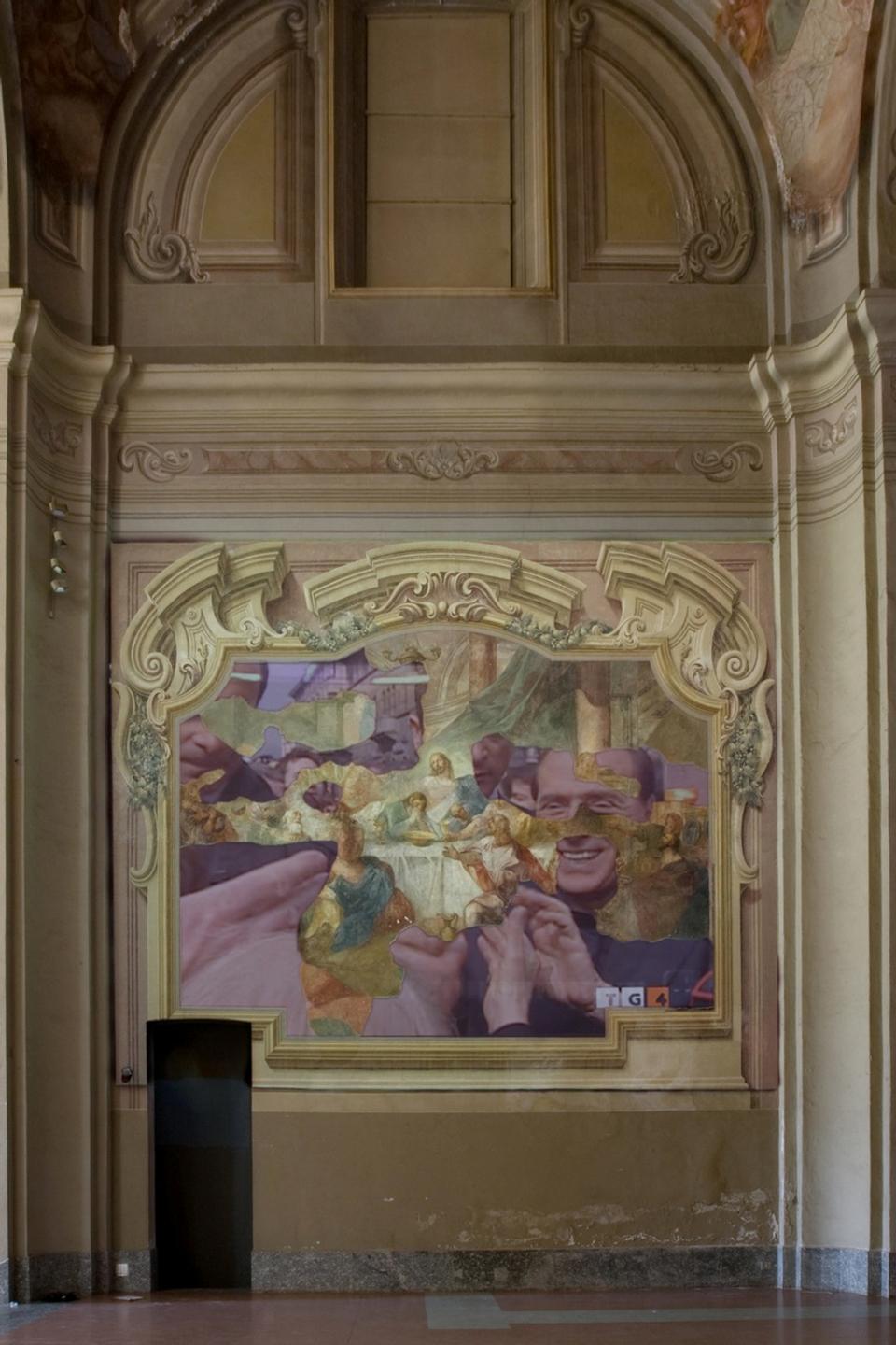 Nella tua esposizione a Como hai proiettato le immagini di tre dei principali canali televisivi italiani sulla superficie affrescata della chiesa che la ospita, creando uno stretto collegamento tra l'identità storica dell'Italia e il presente. La mia lettura è corretta e, soprattutto, quanto è importante sentire il presente per il tuo lavoro di artista?